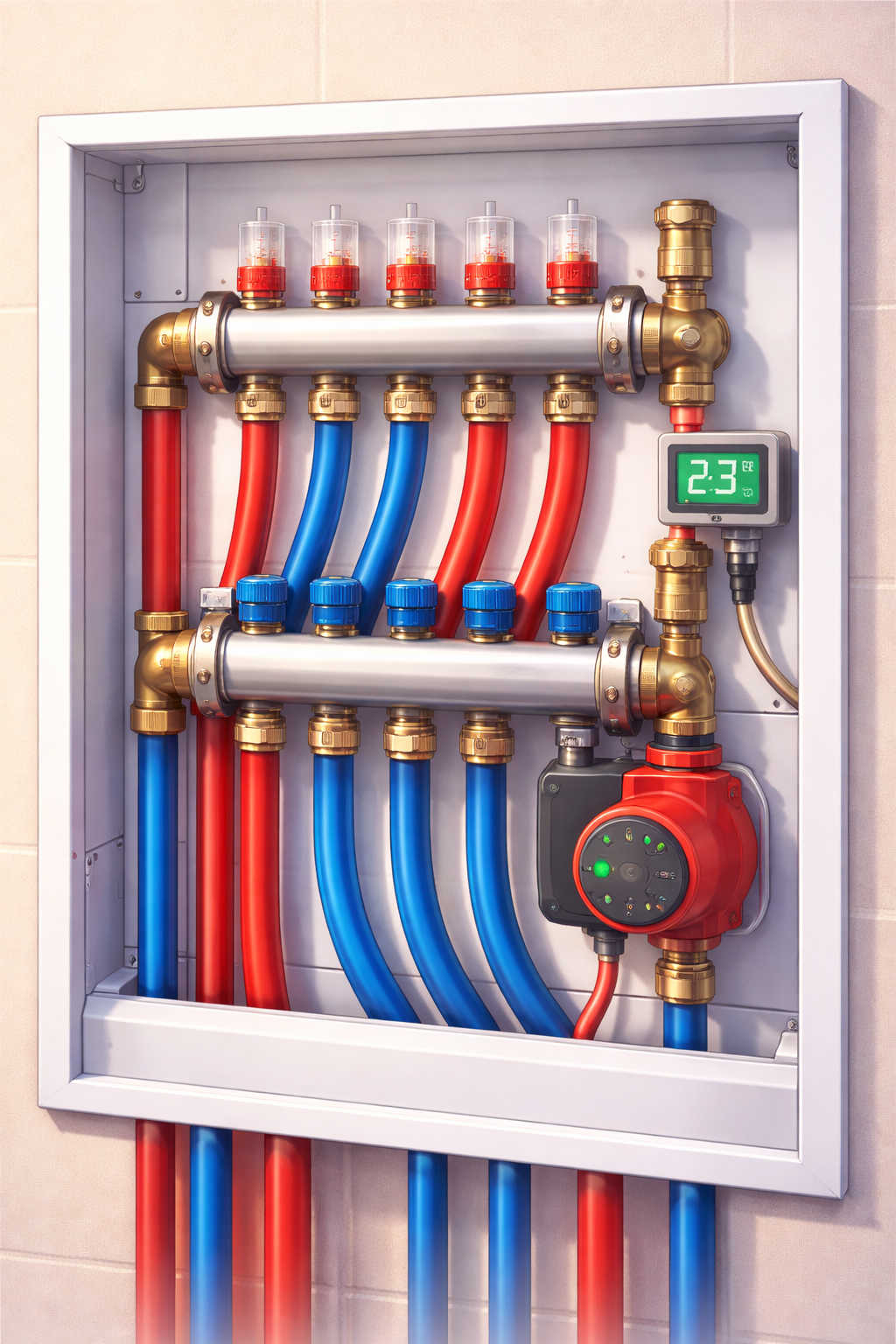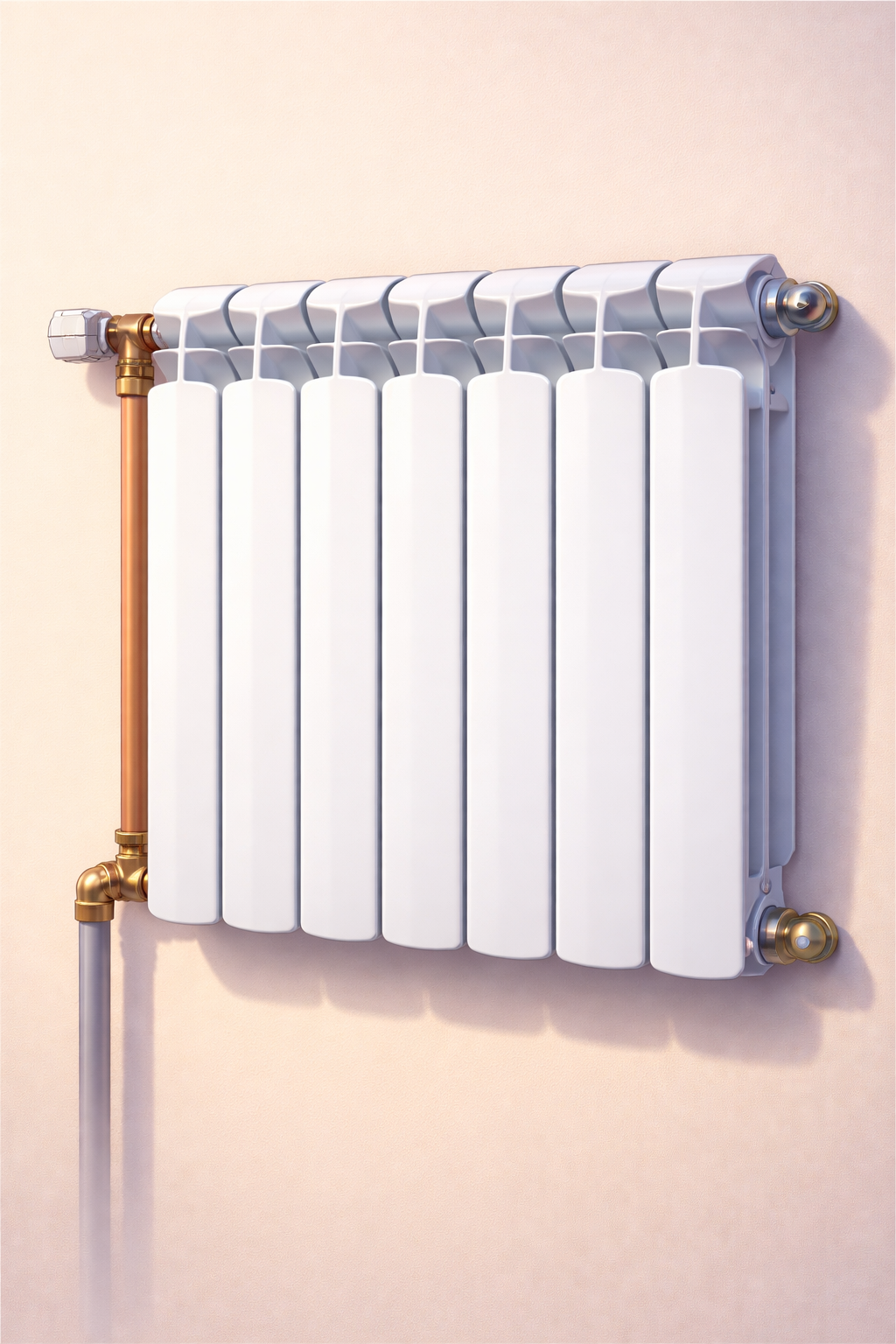Sistemas de calefacción por radiadores y piso radiante para viviendas.